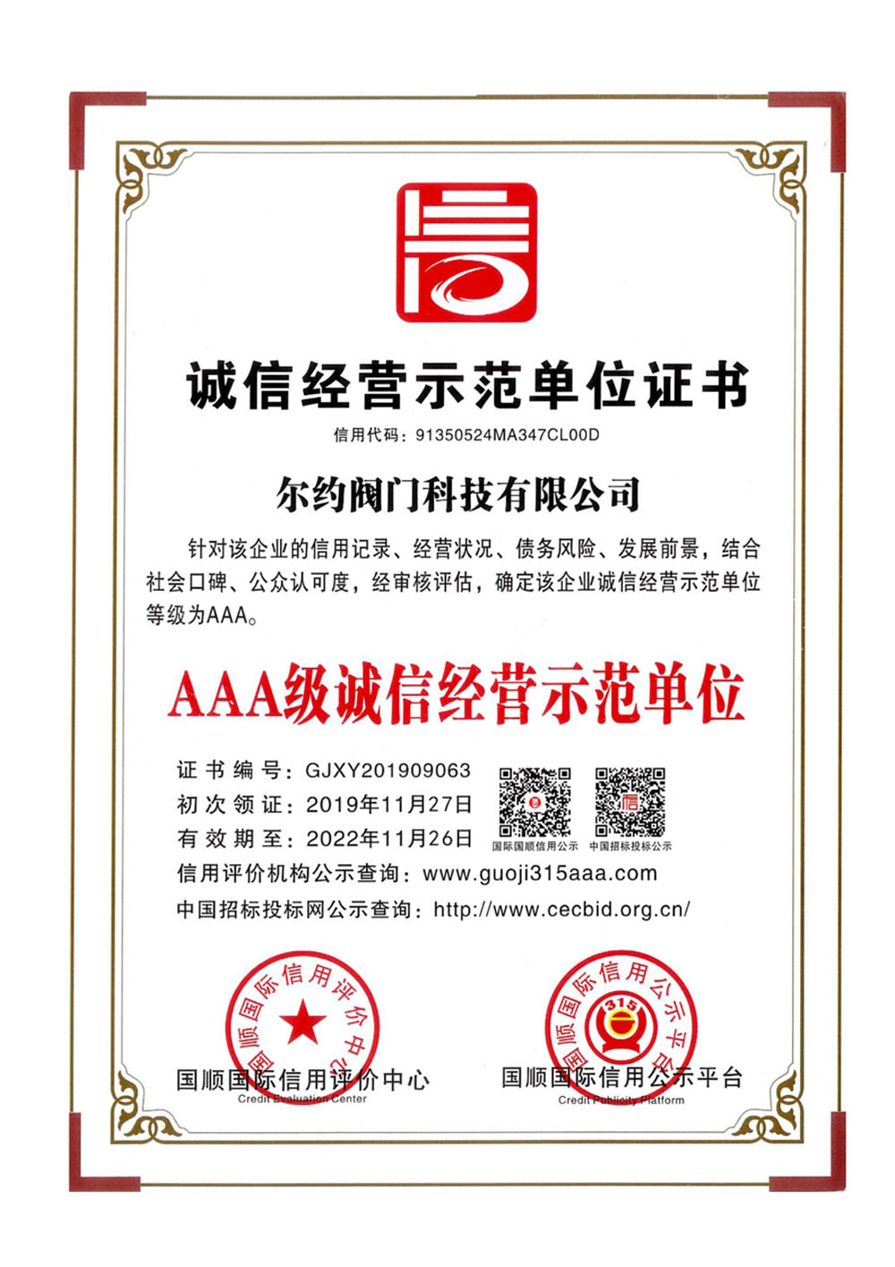 AAA級誠信經營示范單位