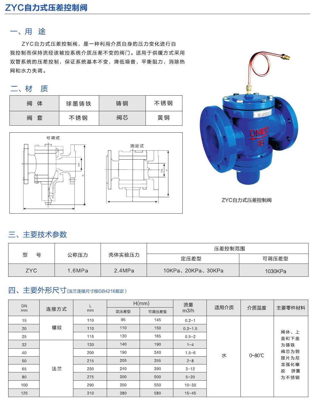 ZYC自力式壓差控制閥,是一種利用介質(zhì)自身的壓力變化進行自我控制而保持流經(jīng)該控系統(tǒng)介質(zhì)壓差不變的閥門。