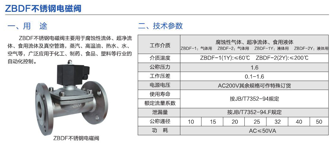 ZBDF不銹鋼電磁閥主要用于腐蝕性流體、超凈流體、食用流體及真空管路,蒸汽、高溫油、熱水、水、空氣等,廣泛應用于化工、制藥、食品、塑料等行業的自動化控制。