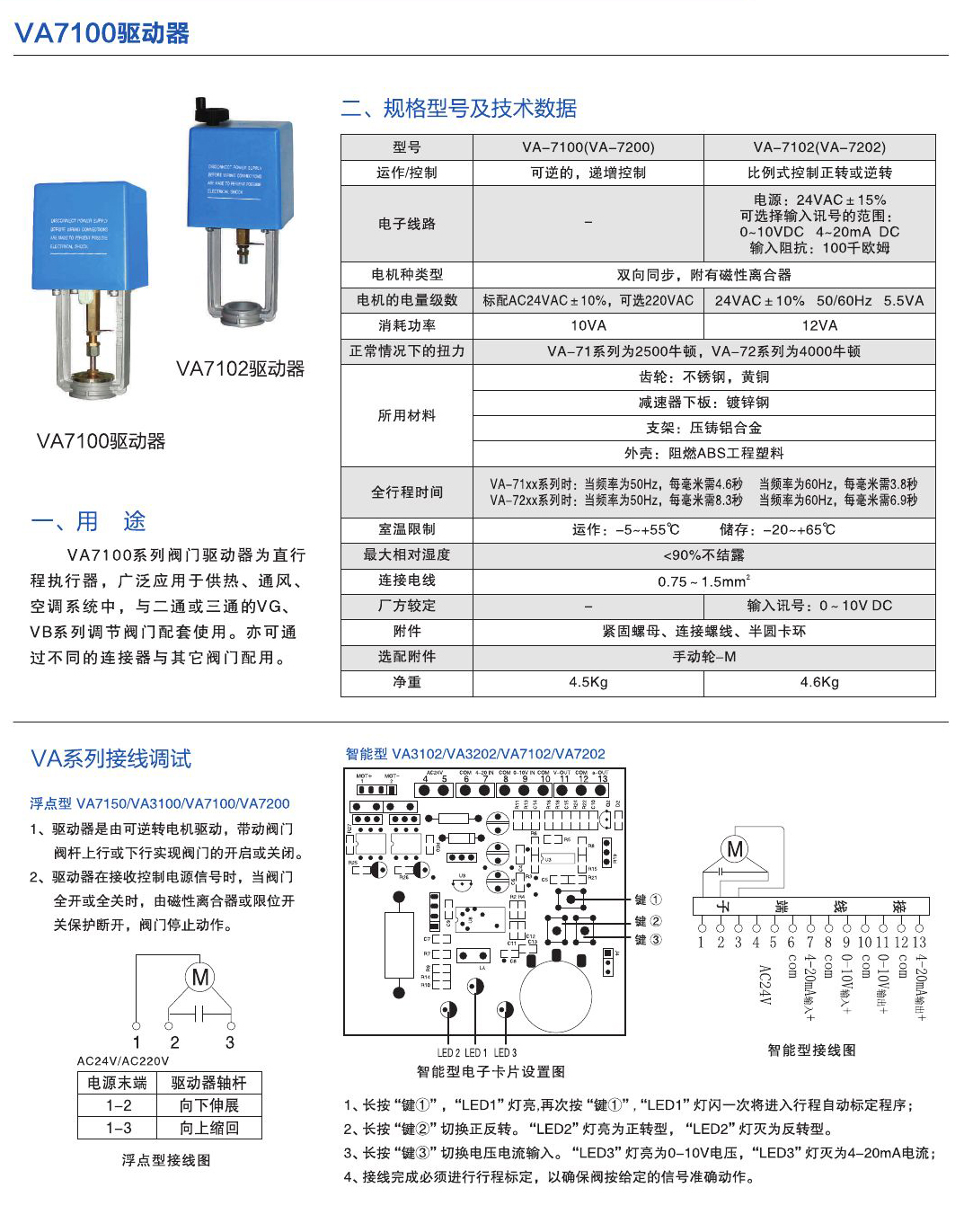 VA7100系列閥門驅動器為直行程執行器,廣泛應用于供熱、通風、空調系統中,與二通或三通的VG、VB系列調節閥門配套使用。